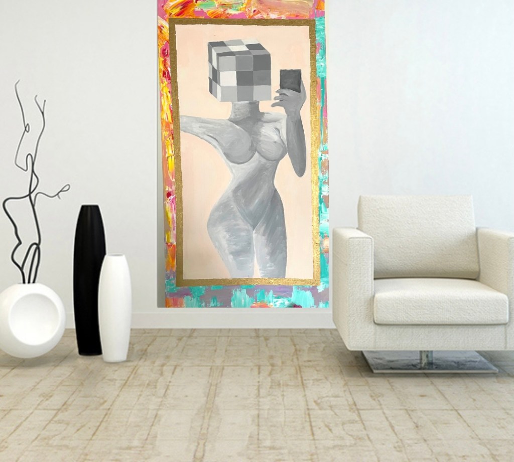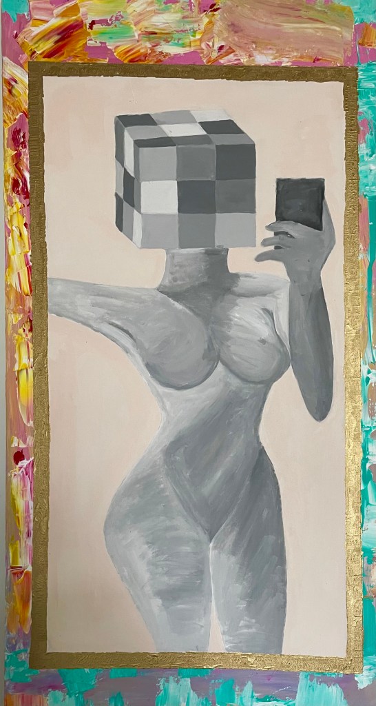 Mixed media on canvas, 28 x 28 inches, 2023